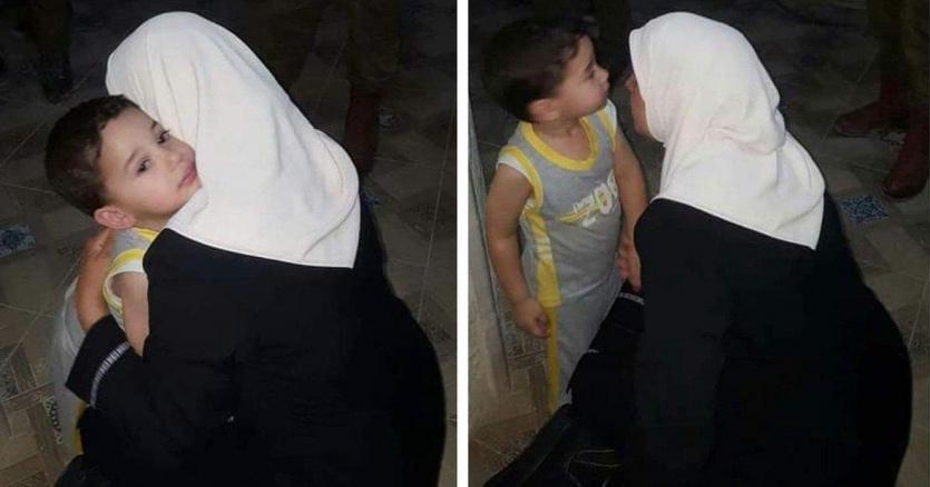 الاسيرة لمى خاطر تودع ابنها قبيل اعتقالها