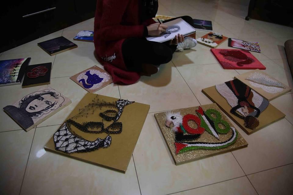 الفنانة وشاح طوّرت من موهبتها ذاتيا واعتمادا على أفكارها الخاصة، تضيف: "في الوقت الحالي أحاول استخدام أدوات وأشياء متوفرة من حولي، لصناعة اللوحات، لكنها ليست الأدوات الصحيحة لفن المسامير والخيوط".