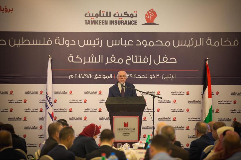 وأشار إلى أن شركة تمكين للتأمين، التي باركها الرئيس محمود عباس، "هي دليل جديد على أننا متمسكون بهذه الأرض، ولا نرغب في وطن بديل أو أية حلول أخرى".