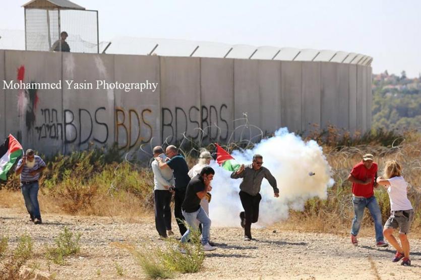 وأطلق جنود الاحتلال القنابل الصوتية والغاز المسيل للدموع بكثافة تجاه المشاركين في المسيرة التي انطلقت من وسط القرية، باتجاه جدار الضم والتوسع العنصري، ما أدى لإصابة مسن (62 عاما) خلال رفع العلم الفلسطيني على البرج العسكري.