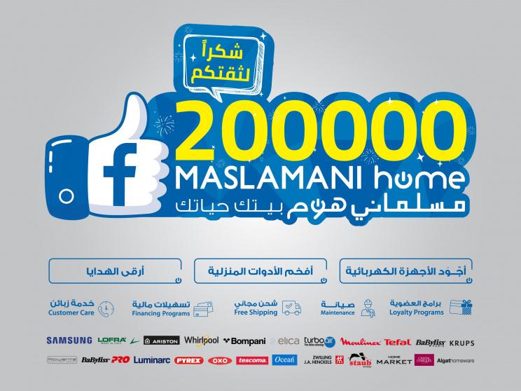 احتفلت شبكة معارض مسلماني هوم بوصول صفحتها الرسمية على فيسبوك لأكثر من 200,000 متابع، وذلك خلال فترة قياسية مدتها عام كامل نشرت خلالها مسلماني هوم العديد من العروض والمسابقات والمنشورات التفاعلية على صفحتها، والتي تستخدمها الشركة كوسيلة تواصل مع زبائنها ومتابعيها للرد على استفساراتهم وتزويدهم بآخر العروض والحملات.