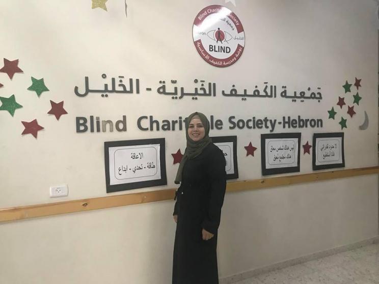 تودع طفليها صباحًا وهي تحمد الله أنهم جميعًا بصحة وعافية، وما إن تدخل مكان عملها في جمعية الكفيف الخيرية بمدينة الخليل بخطوات متحفزة للعطاء حتى تدرك أن الظلمة أشدّ حلكة من كونك كفيفًا، فمن حرم نعمة البصر ليس كمن فقد بصيرته فتاه في دهاليز يتبختر فيها من دون هدف، ولهذا فإنها تزرع الأمل في نفوس لا تحدّها إعاقة بصرية بتعليمهم اللغة الإنجليزية من خلال الدراما.
