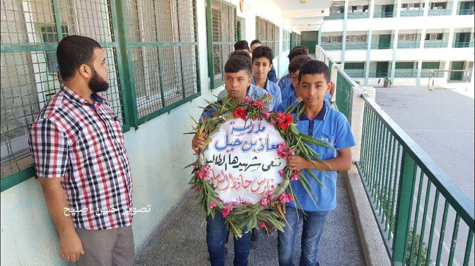 مدرسة "معاذ بن جبل" شرق مدينة غزة، استيقظت صباح السبت الماضي، على صدمة استشهاد ابنها، أجواء من الصمت والحزن، سيطرت على وجوه زملائه الطلاب حزنا على فقدان صديقهم .