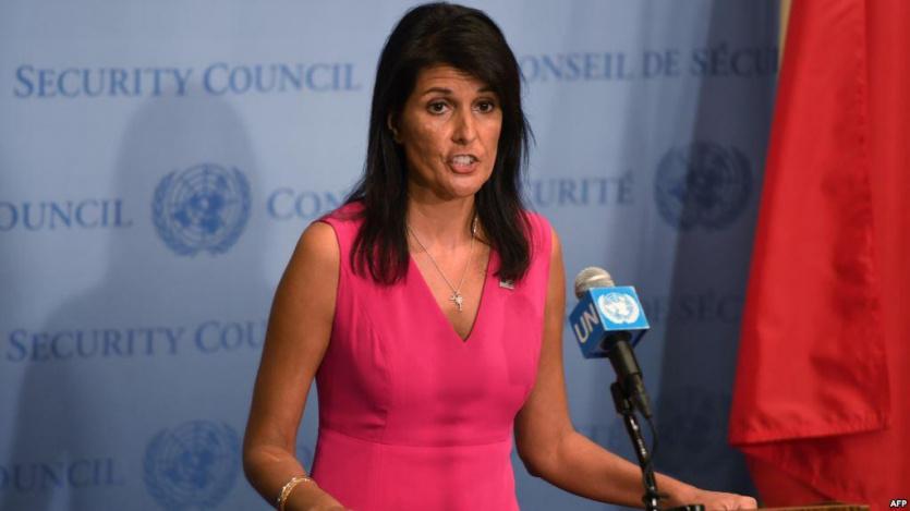 وتولت هيلي منصب سفيرة الولايات المتحدة في الأمم المتحدة في يناير/ كانون الثاني عام 2017.