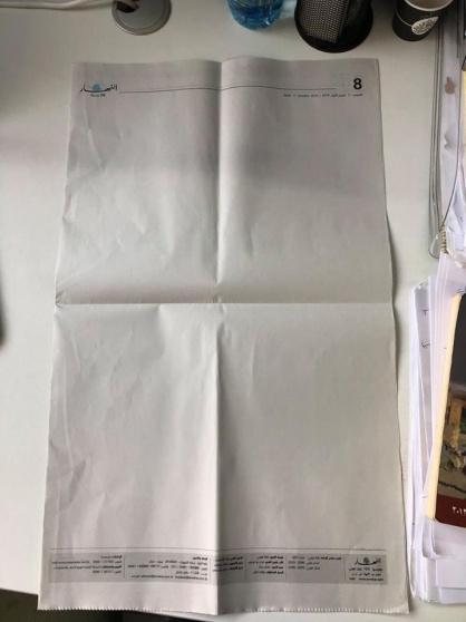 صدرت صحيفة النهار اللبنانية اليوم الخميس بصفحات فارغة في عددها الورقي ، فغطّى الأبيض صفحاتها الثماني. كما اكتسى موقعها الإلكتروني باللون الأبيض، بالإضافة إلى حساباتها على مواقع التواصل الاجتماعي.
