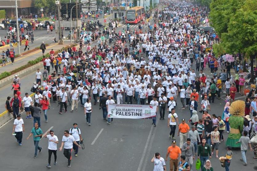 انطلقت، الأحد، مسيرة حاشدة وسط العاصمة الاندونيسية جاكارتا، في إطار أسبوع التضامن الاندونيسي مع فلسطين، تحت عنوان: "مسيرة من أجل السلام والانسانية تضامناً مع فلسطين".