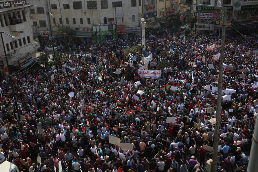 وتظاهر الآلاف من موظفي القطاع الخاص والعمال، اليوم الاثنين، على دوار المنارة وسط مدينة رام الله للمطالبة بتعديلات على قانون الضمان الاجتماعي.