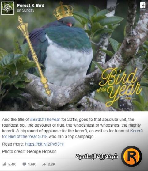 أعلنت نيوزيلندا عن جائزة جديدة هذا العام تعرف باسم "طائر السنة"، للتوعية من المخاطر التي تتعرض لها الطيور.