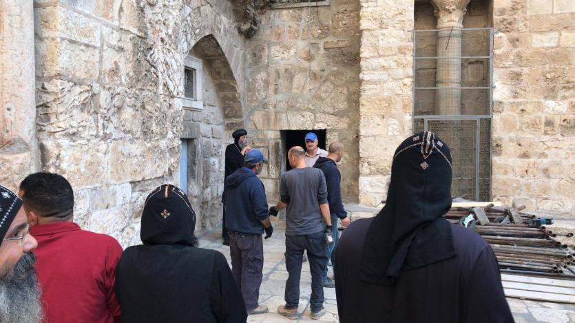ولفت مراسلنا الى أن التوتر ما زال سيد الموقف في محيط دير السلطان المجاور لكنيسة القيامة في البلدة القديمة بالقدس المحتلة وسط تواجد مكثف لقوات الاحتلال.