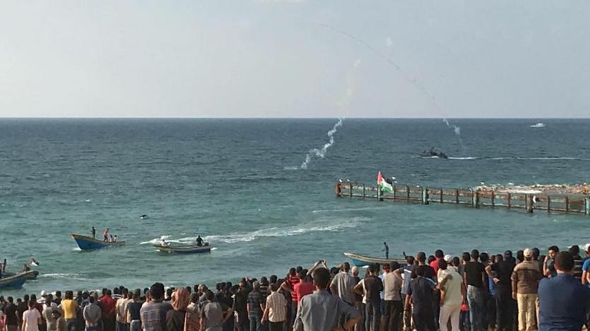 وتوافد المواطنون إلى السياج الفاصل للمشاركة في المسير البحري، وانطلقت قوارب كسر الحصار من ميناء غزة، بإتجاه منطقة الحدود البحرية الفاصلة شمال قطاع غزة.