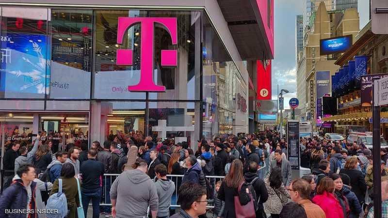وشهد متجر "تي موبيل" وسط مانهاتن طوابير طويلة من المشترين الذين اصطفوا لشراء هاتف "ون بلس 6 تي" الجديد، الذي أصدرته شركة "ون بلس" الصينية، الاثنين.