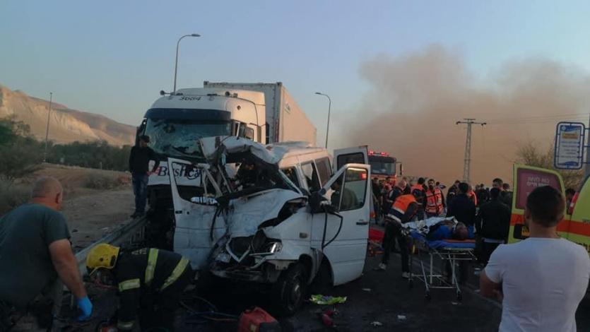 لقي 6 عمال فلسطينيين مصرعهم وأصيب 3 اخرون بجروح خطيرة للغاية عقب تصادم شاحنة وسيارة نقليات على طريق 90 قرب قرية فصايل شمال اريحا صباح اليوم.