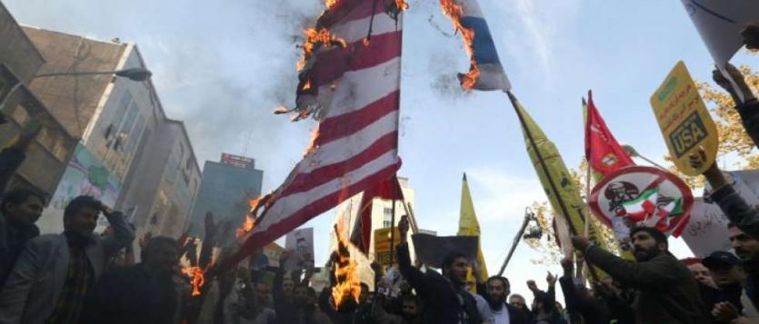 محتجون يحرقون العلم الأمريكي في إيران