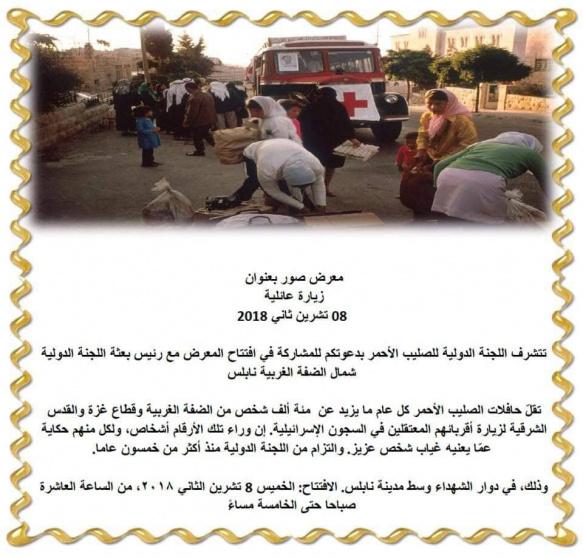 تستعد بعثة اللجنة الدولية للصليب الأحمر لإطلاق معرض صور "زيارة عائلية" يوم الخميس القادم، على دوار الشهداء وسط مدينة نابلس.
