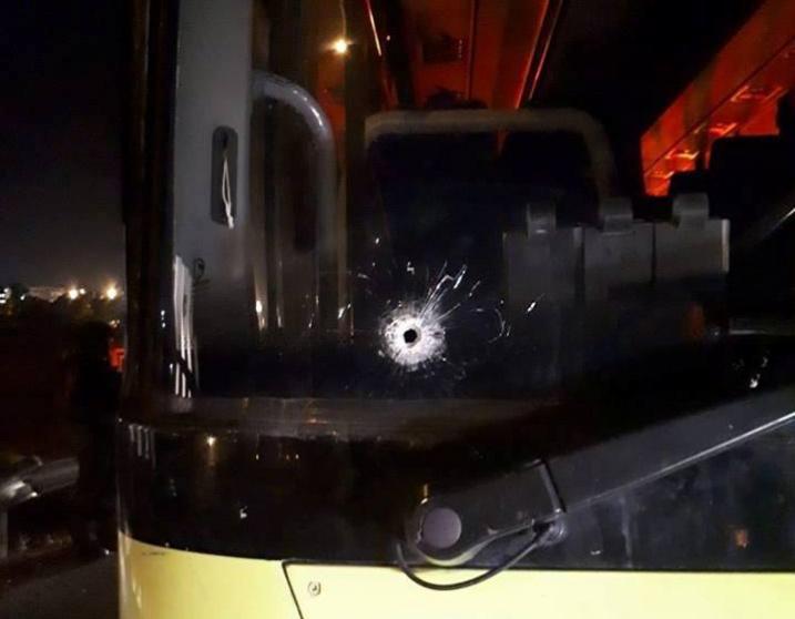 آثار الرصاص الذي استهدف حافلة المستوطنين