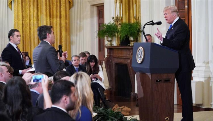 علّق البيت الابيض، التصريح الصحفي لمراسل شبكة "سي أن أن" الذي كان قد دخل في وقت سابق في سجال حاد مع الرئيس دونالد ترامب خلال مؤتمر صحافي، ووصف ترامب المراسل بأنه "عدو الشعب".