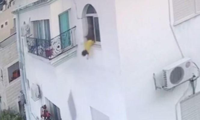 فيديو- نجاة طفلة سقطت من الطابق الثالث في بلدة العزيز