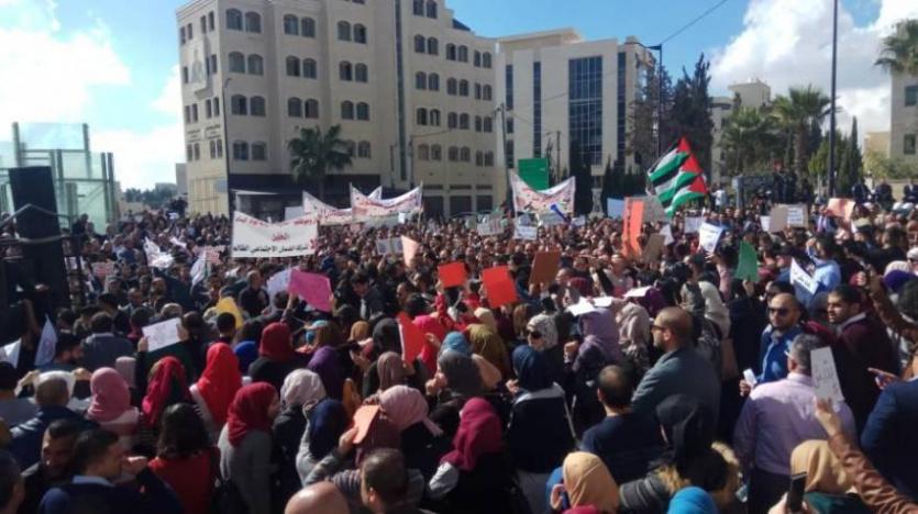 الآلاف يتظاهرون أمام مجلس الوزراء رفضًا لقانون الضمان