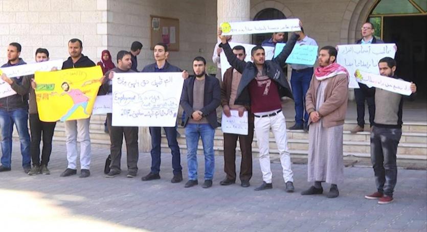 وقال أحد المحتجين أن الوزارة ظلمت الشباب من خلال تهميش الخريجين الذين تعبوا وسهروا وتقدموا للامتحانات ونجحوا وانتظروا دورهم في التوظيف، مستغربا قول مدير الشؤون الادارية رائد صالحية أن القائمة التي تضم 4000 مرشح استهلكت، رغم توظيف 128 عقد منهم فقط، ومن المعروف أن القائمة لا تلغى الا بامتحان جديد وهو أمر لم يحدث.