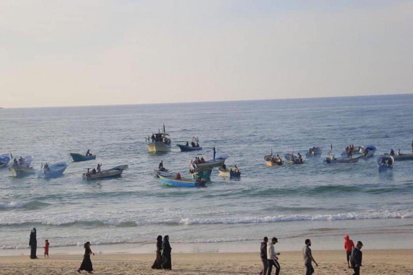 وتوافد المواطنون إلى منطقة الحدود البحرية الفاصلة "زيكيم" شمال القطاع، دعما للمسير البحري الـ 17 الذي يأتي في في اطار فعاليات مسيرات العودة.