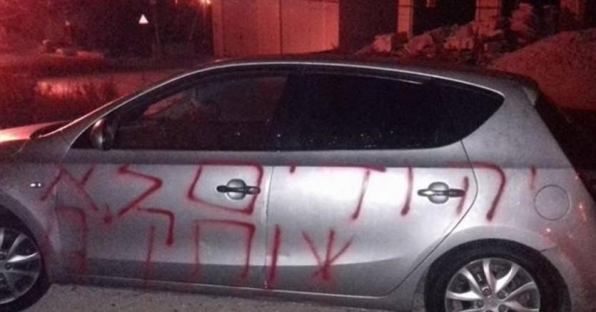 مركبة خط المستوطنون شعارات عنصرية عليها وأعطبوا إطاراتها