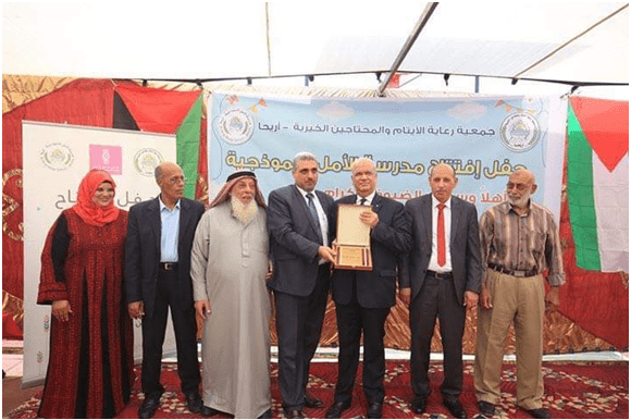 احتفل بنك فلسطين وجمعية رعاية الأيتام والمحتاجين الخيرية في مدينة أريحا بافتتاح مدرسة الأمل النموذجية، والتي تم تمويلها بشكل مشترك بين وزارة الحكم المحلي والبنك الإسلامي للتنمية، فيما تم تأثيث المدرسة بتبرع من بنك فلسطين.