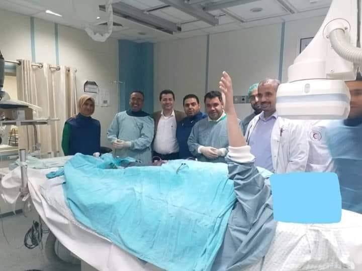 تمكن الطاقم الطبى بقسم القسطرة القلبية بمجمع الشفاء من اجراء عملية شفط جلطة دموية من شرايين الدماغ بالقسطرة "لعشرينية " كانت تعاني من جلطة دماغية حادة أدت الى حدوث شلل نصفي في اليد اليسرى والساق اليسرى .