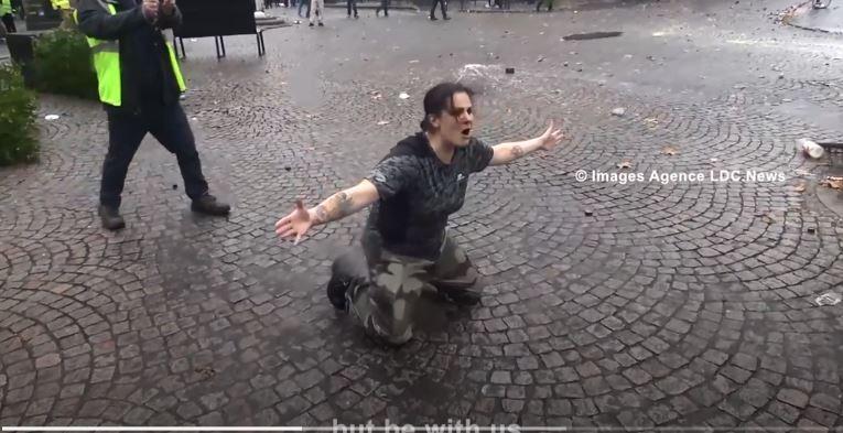 وفيما قال معلقون عرب إن السيدة الغاضبة شرطية فرنسية، تبين أن الأمر يتعلق بمحتجة ترتدي لباسا شبيها بالبذلات العسكرية.
