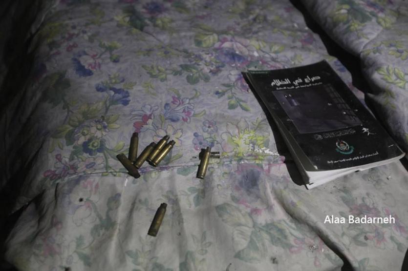 وظهرت أيضا بضعة طلقات نارية فارغة يعتقد أنها أنطلقت من سلاح الشهيد الذي حاول الدفاع عن نفسه في وجه قوات الاحتلال المدججة التي اقتحمت مخيم عسكر في مدينة نابلس الليلة الماضية لاغتياله.
