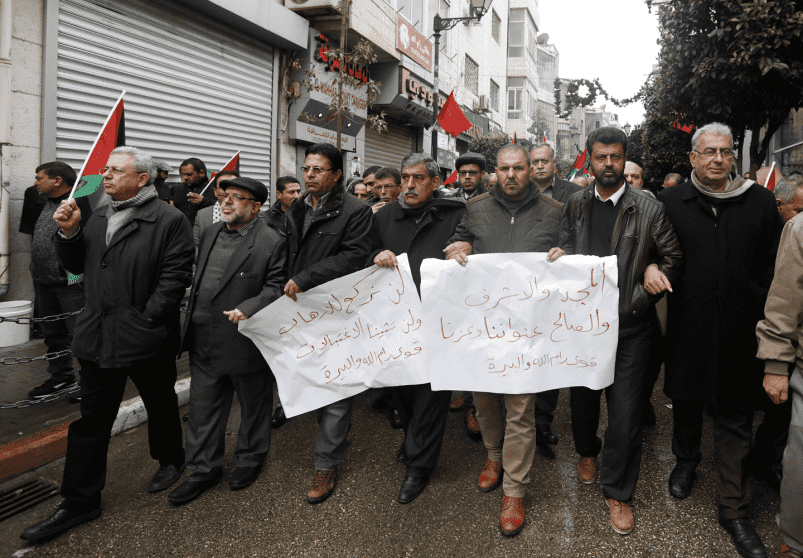 شارك مئات المواطنين، اليوم الخميس، في مدينة رام الله، بمسيرة احتجاجية، تنديدا بجريمة اعدام الاحتلال، ثلاثة مواطنين الليلة الماضية وفجر اليوم، في القدس ونابلس ورام الله.