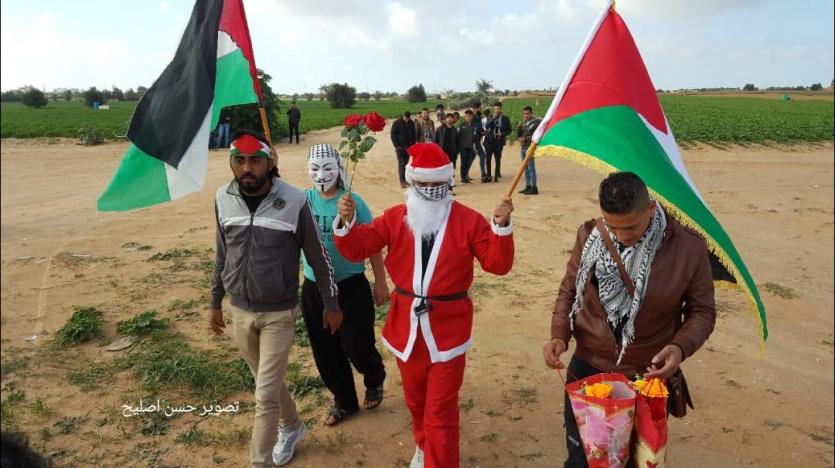 شاب يجسد شخصية "بابا نويل" في مسيرات العودة