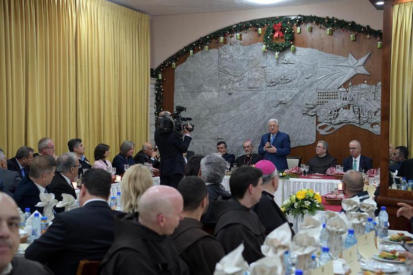 تصريحات الرئيس جاءت خلال مشاركته في عشاء العيد "عشاء الميلاد" في دير الفرنسيسكان ببيت لحم، بحضور رئيس الوزراء رامي الحمد الله، وممثل العاهل الأردني، وزير الداخلية سمير مبيضين، وعدد من الوزراء وقادة الأجهزة الأمنية.