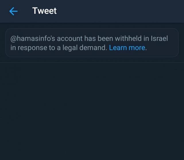 وبرر "تويتر" هذا الإجراء بقوله إنه كان مجبرا على الانصياع للقوانين المحلية لكل بلد، رغم أنها تحترم حرية التعبير، وأن الحسابات لا تزال تظهر في كل مكان بالعالم خارج نطاق سيطرة إسرائيل.