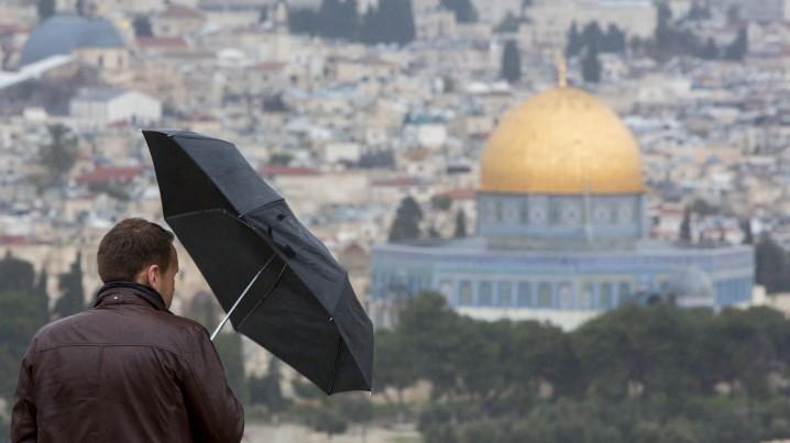 مواطن مقدسي خلال تأثر فلسطيني بمنخفض جوي وأجواء عاصفة