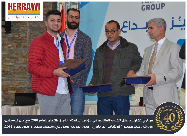 وتم عقد حفل تكريم الشركات الفائزة في الاستفتاء في برج فلسطين في مدينة رام الله يوم الأربعاء الماضي, الموافق 25-12-2018 بحضور ممثلين عن محافظة رام الله والبيرة، الغرفة التجارية وعدد من المؤسسات الوطنية ورجال الأعمال، حيث استلم حمزة الحرباوي في مجموعة حرباوي شهادة التكريم بالنيابة عن الشركة