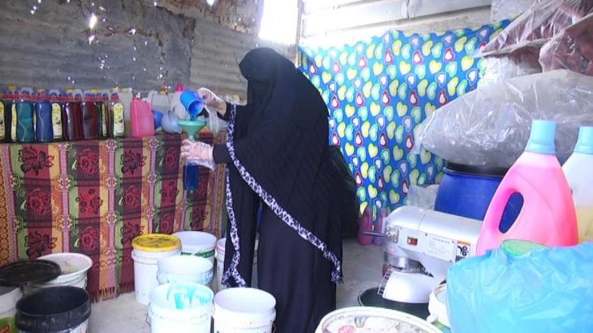وأكدت "ام أحمد" أن ظروفها دفعتها الى تعلم صناعة مواد التنظيف في البيت، والعمل بكل اخلاص ونشاط حتى لا تحتاج أحد من اجل العلاج ومصاريف الأولاد الذين يذهبون احيانا الى الأسواق لمساعدتها في بيع منتجاتها، بالإضافة الى حضور بعض الزبائن الى بيتها.