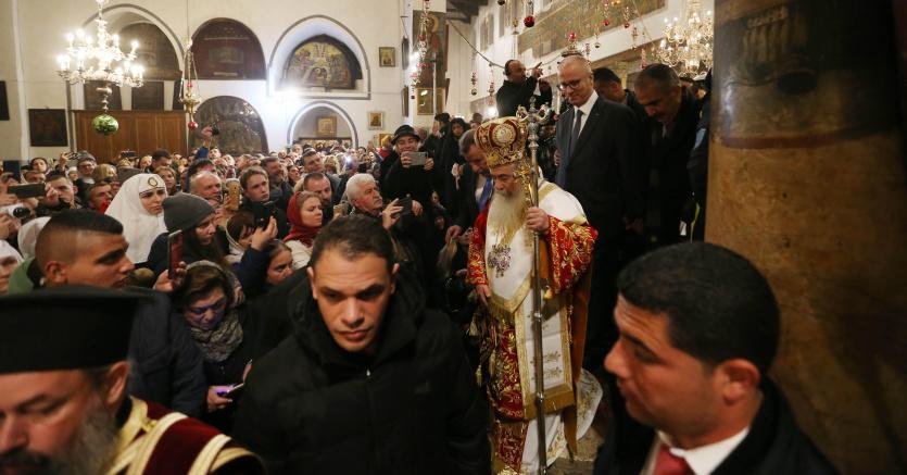 وترأس القداس بطريرك المدينة المقدسة وسائر أعمال فلسطين والأردن كيريوس كيريوس ثيوفولس الثالث، الذي تمنى، في رسالته لمناسبة عيد الميلاد، أن يحل السلام في أرض السلام، وفي العالم أجمع، كما تمنى لمدينة بيت لحم الازدهار والتقدم.
