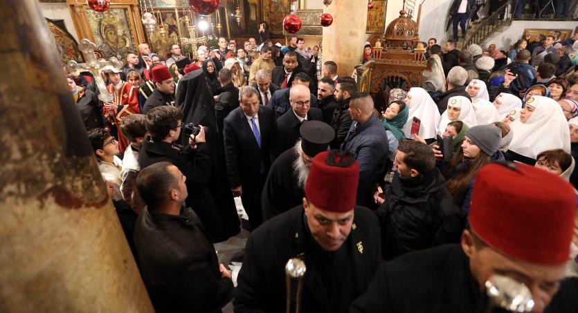حضر رئيس الوزراء رامي الحمد الله، نيابة عن الرئيس محمود عباس، قداس منتصف الليل لعيد الميلاد المجيد للطوائف المسيحية الأرثوذكسية التي تسير حسب التقويم الشرقي، في كنيسة المهد بمدينة بيت لحم.