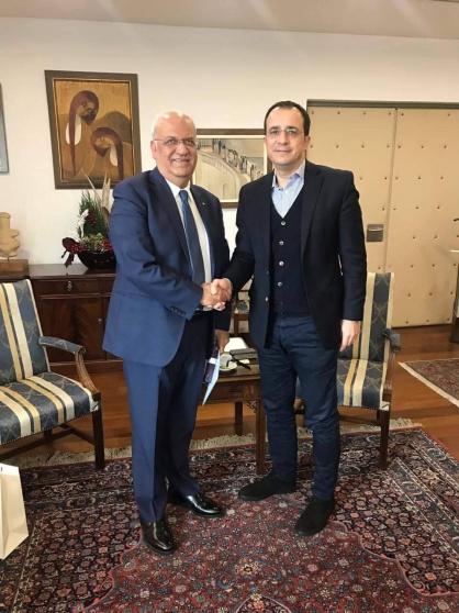 جاء ذلك خلال لقاء عريقات بحضور سفير فلسطين لدى قبرص جابي الطويل، رئيس البرلمان القبرصي ديمترس سليورز، ووزير الخارجية نيكوس كريستو دوليدس، ورئيس الحزب الديمقراطي الحاكم ايفروف نيو فيتو، ورئيس حزب أكيل اليساري اندروس كابريانو، كل على حدة.