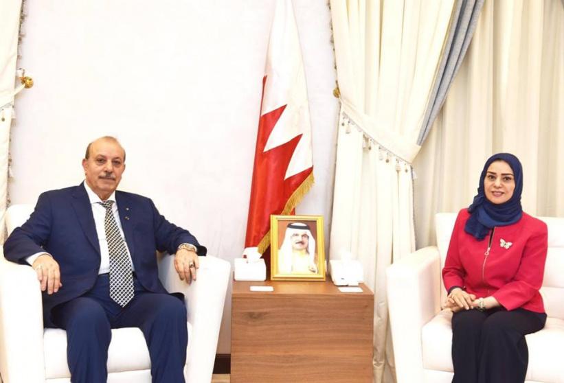 جاء ذلك لدى استقبالها في مكتبها بالعاصمة المنامة، اليوم الأربعاء، سفير دولة فلسطين لدى المملكة خالد عارف.