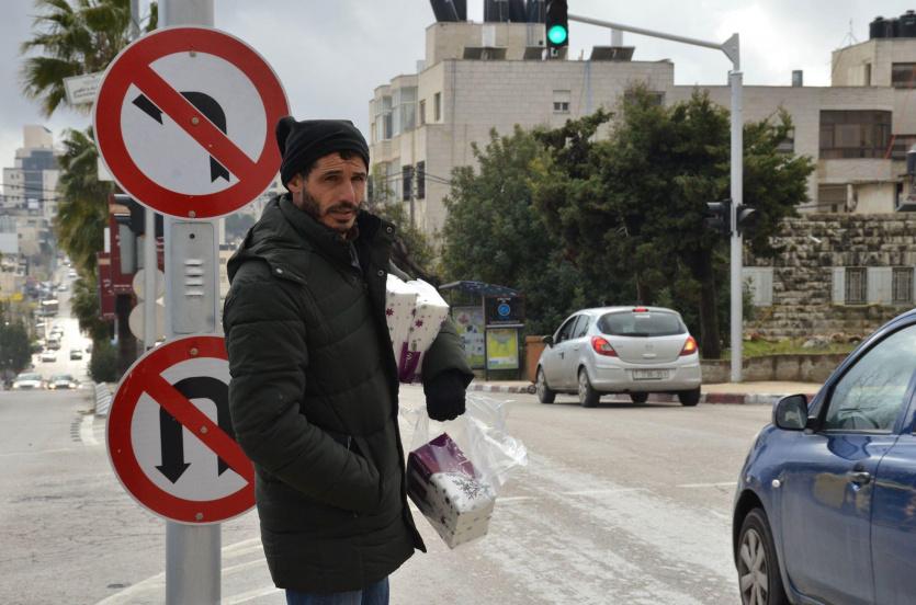 بوجهه الشاحب الذي ارهقه الزمن وانتهكته متاعب الحياة يقف ماجد على الاشارات الضوئية في منطقة البالوع بمدينة البيرة يشكو حظه في هذه الدنيا حاملا "دكانه" في يديه يتجول من شارع لشارع بحثا عن زبون يشتري منه علبة "محارم"، عله يؤمن من خلالها قوت يومه ليعود الى زوجته واطفاله الخمسة ببضعة شواقل تحول دون اضطراره لمد يده الى الناس.
