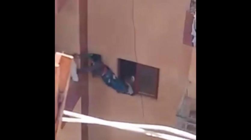 وقالت الوزارة في بيان على صفحتها بفيسبوك، إنها رصدت "تداول مقطع فيديو يظهر خلاله سيدة تقوم بإجبار نجلها على التسلق من نافذة سلم عقار إلى شرفة شقة بطابق مرتفع كاد أن يسقط خلالها حتى تمكنت من سحبه لداخل النافذة مرة أخرى والتعدي عليه بالضرب".