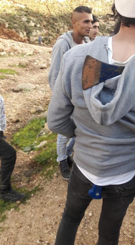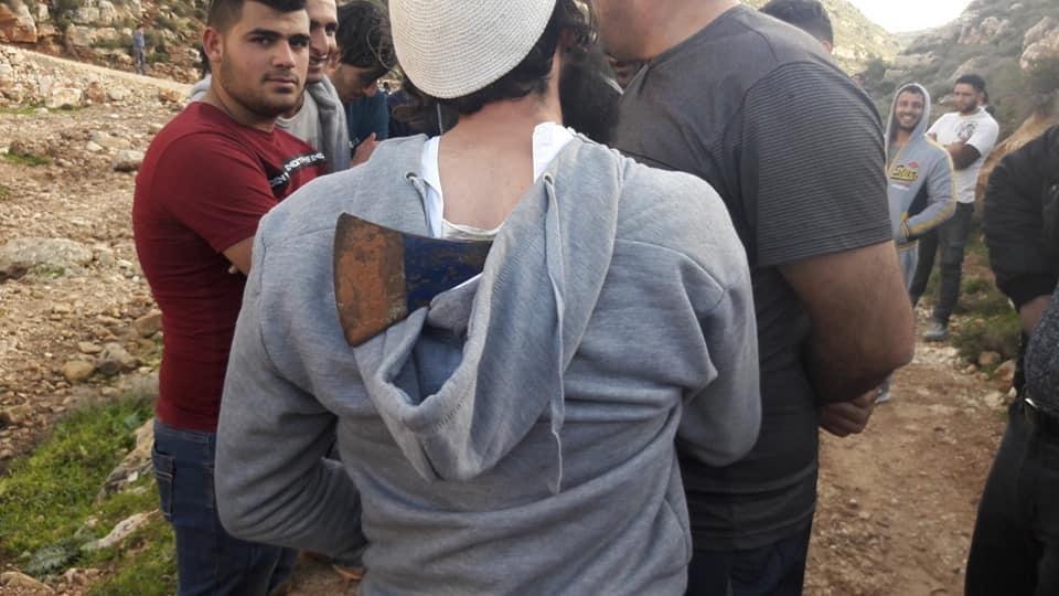 مستوطن يحمل بلطة يهاجم المواطنين في ديراستيا