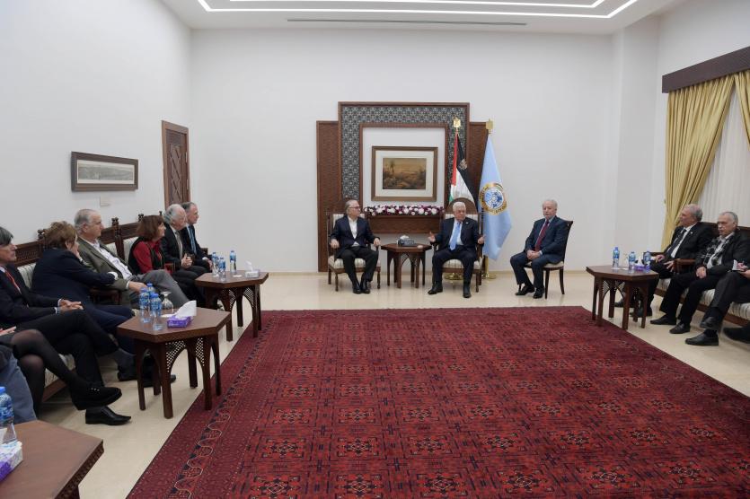 استقبل الرئيس محمود عباس، بمقر الرئاسة في مدينة رام الله، مساء الخميس، وفداً اقتصادياً إسرائيليا ضم ثلاثين اقتصاديا من مؤسسة "كسر الجمود الاسرائيلية" برئاسة رجل الاعمال شموئيل ميتار.