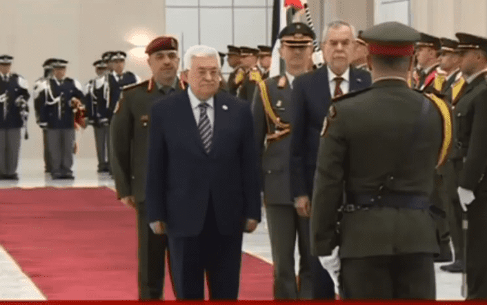 واستعرض الرئيسان حرس الشرف الذي اصطف لتحيتهما، فيما عُزف السلامان الوطني الفلسطيني والنمساوي.