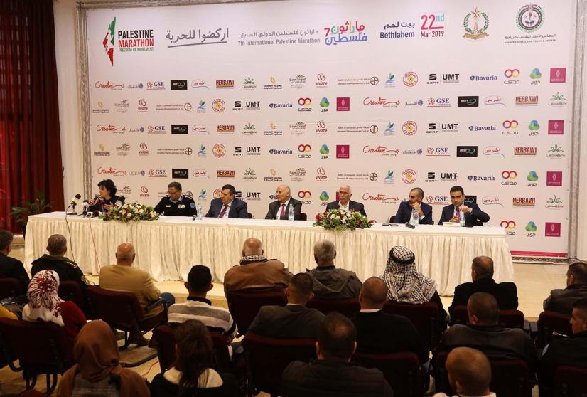 ودعا الرجوب ممثلي وسائل الاعلام إلى إنجاح الحدث لما يحمله من دلالات وطنية ورياضية، مشيرا إلى أنّ أهمية الماراثون تحمل دلالات، من أهمية المكان حيث الانطلاق من باب كنيسة المهد ومسجد عمر بن الخطاب، مرورا بجدار الفصل العنصري الفاشي، وصولا إلى مخيم عايدة العظيم بأهله وحقهم في العودة إلى أرضهم.