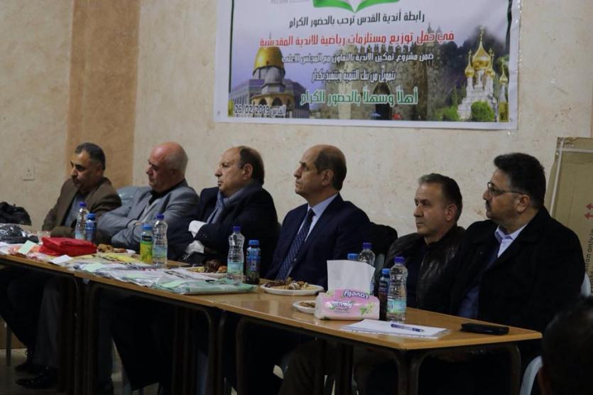 وجرى توزيع المنح لممثلي الأندية بحضور وزير شؤون القدس م. عدنان الحسيني ومدير دائرة المشاريع في " بكدار" م. رائد عنبتاوي وممثل عن المجلس الأعلى للشباب والرياضة معتصم أبو غربية والمهندس سامر خاروف من المجلس الاقتصادي ورئيس رابطة اندية القدس احمد سرور ورئيس بلدية الرام السيد راقي غزاونة.