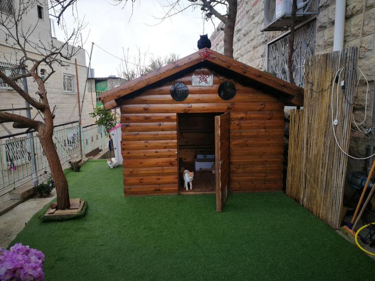 ملجأ القطط الأول، مساحته صغيرة، فيه كوخ كبير وإلى جانبه أكواخًا صغيرة، خصصت جميعًا لعشرات القطط المشردة التي احتوتها هبة، ووفرت لها بيئة آمنة تحميها من شر الإنسان كما تقول. "عملت الملجأ بعد 12 سنة من تربية القطط، عندما شاهدت حجم القسوة والعنف من مجتمعنا باتجاه القطط، وتسميمها، قررت عمل ملجأ بحيث لا تخرج للشارع، تحميهم من كل سوء، ونوفر لها كل الرعاية".