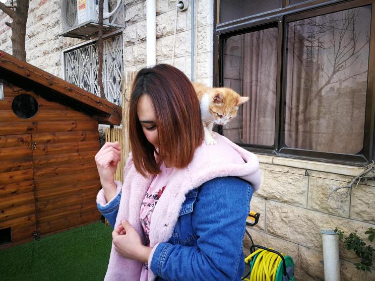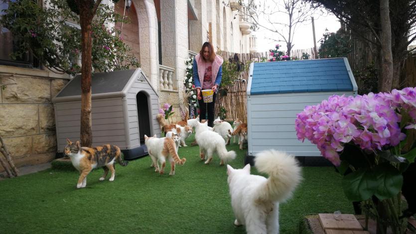هناك، في المدينة التي أكل الاحتلال قلبها وأطرافها، وعلى جناح شارع السلام تحديدًا، أنشأت العشرينية هبة الجنيدي، ملجأ القطط الأول في الضفة الغربية الذي يحتوي اليوم 45 قطًا وقطة، بهدف "إنقاذ القطط من الشوارع وتبنيهم، حتى تعيش حياتها بشكل كامل دون تعرضها للأذى، فأنا أوفر لها كل إحتياجاتها من طعام وشراب ورعاية صحية وغيرها".