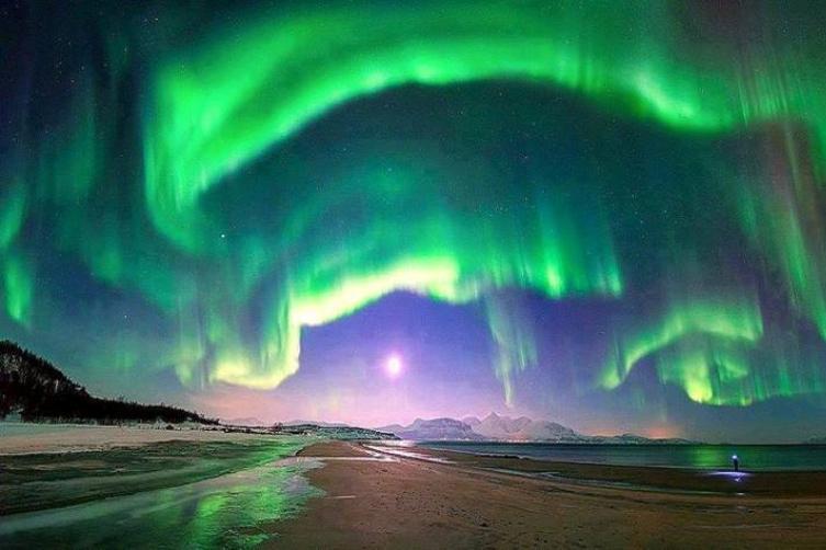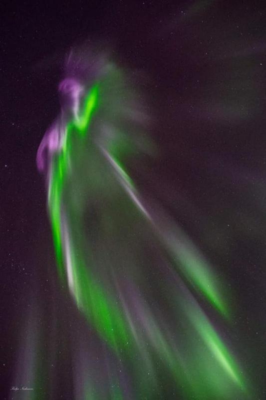 وشهدت سماء ليتويارفي، بالدائرة القطبية الشمالية، عرضا مبهرا لأضواء الشفق القطبي، بالألوان الأخضر والوردي والأرجواني والأبيض.